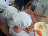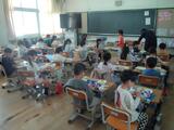 給食の準備では、6年生のおにいさんおねえさんたちも手伝いに来てもらい、先生の話をよく聞きながら、配膳にも挑戦しました。少し緊張しながらも、友だちと協力して上手に準備を進めることができました。