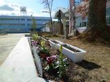 11月中旬に2年生が行った「花いっぱいプロジェクト」第一弾の苗植えから1か月、すくすくと2年生がお世話してきた苗を駅前に移し、今日は第二弾の定植作業を行いました。