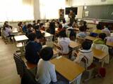 飼育委員会や美化緑化委員会から報告やお知らせがあり、校長先生からは読書感想文やTOMBOコンクールの表彰がありました。最後に代議員からは、プロジェクターを使った説明をおりまぜながら、ユニセフの募金のお知らせがありました。
